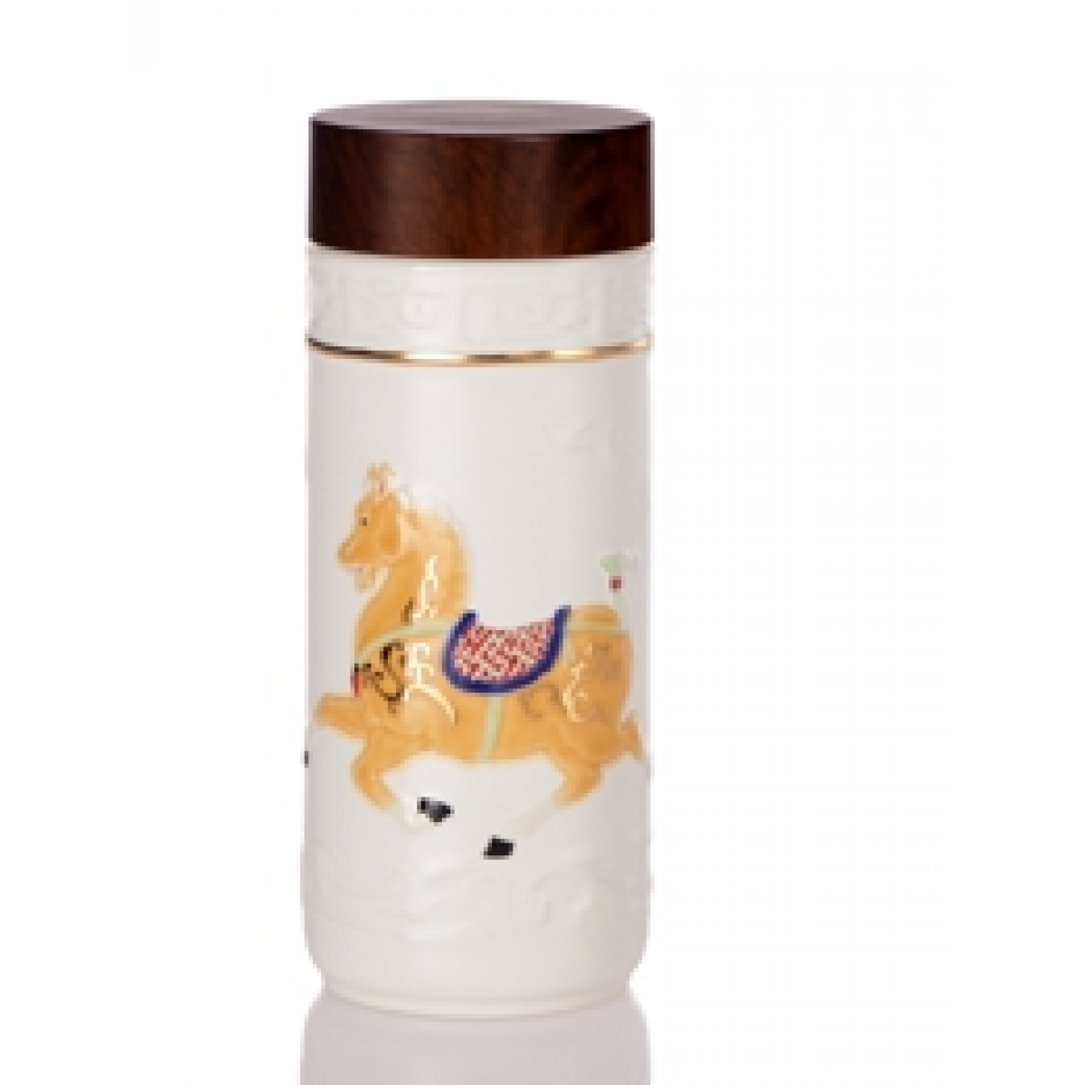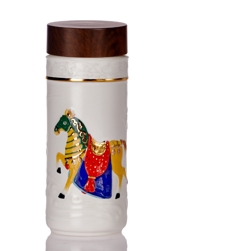 商品名称:乾唐轩 盛世宝马随身杯(木纹盖)330ml (双层)