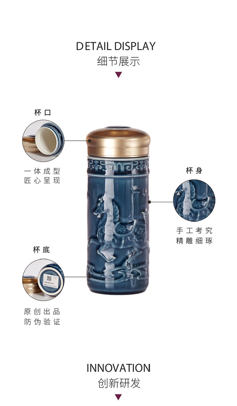 商品名称:乾唐轩 盛世宝马随身杯 330ml(双层)