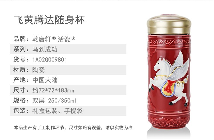 商品名称:乾唐轩 飞黄腾达(飞天马)随身杯 330ml(双层)