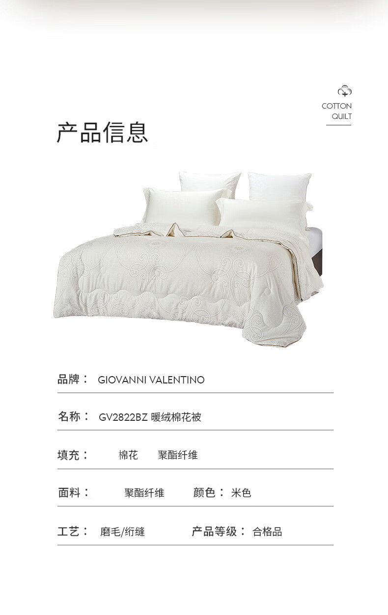 商品名称:卓凡尼·华伦天奴(GIOVANNIVALENTINO)暖绒棉花被GV2822BZ