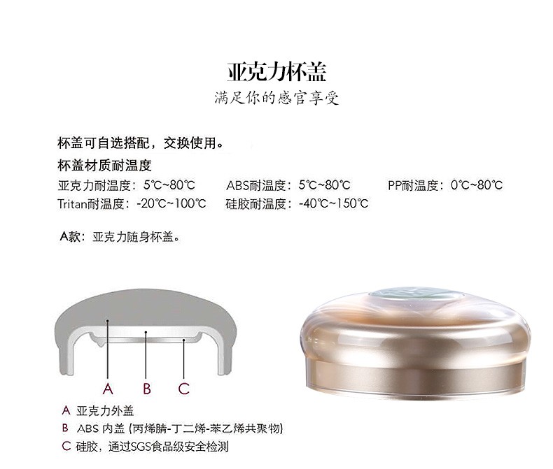 乾唐轩 LIVEN水德随身杯(木纹盖) 330ml(双层)透明白+彩釉贴花
