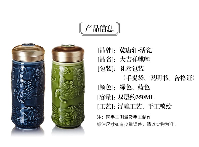 商品名称:乾唐轩 吉祥麒麟大随身杯 (大) 330ml (双层)