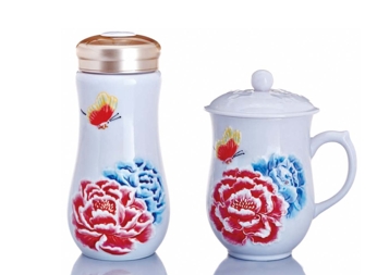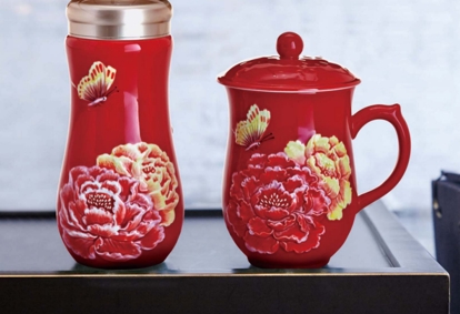 乾唐轩 盛世牡丹随身杯/高杯系列套组 330ml (双层)+490ml