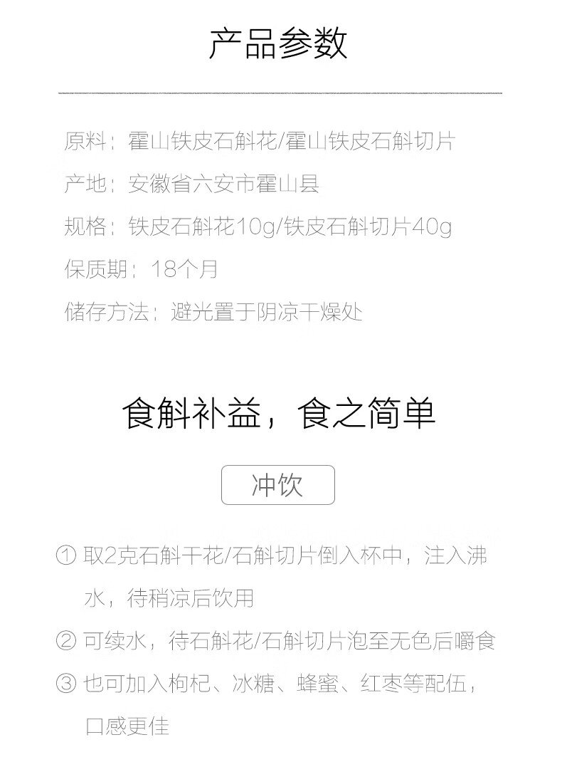 规格 :铁皮石斛切片40g×1袋 铁皮石斛花10g×1袋