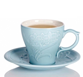 乾唐轩 蝴蝶兰花咖啡/红茶两用杯(精装礼盒)240ml (一杯一盘)