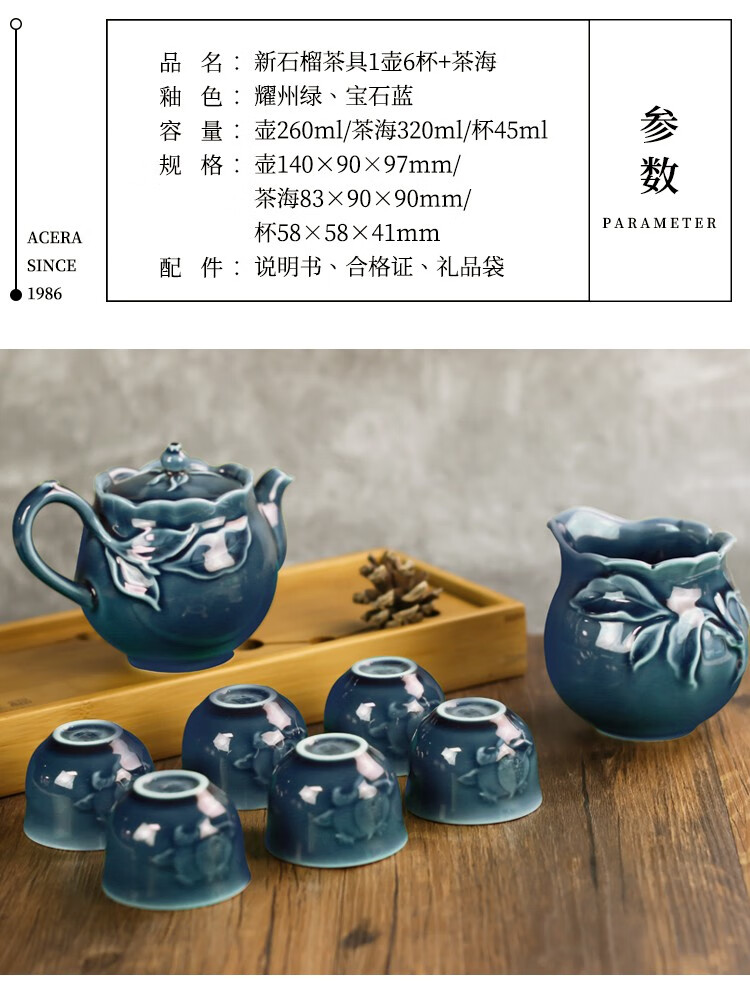 商品名称:乾唐轩 新石榴茶具 壶260ml / 茶海310ml / 杯50ml (1壶6杯+茶海)