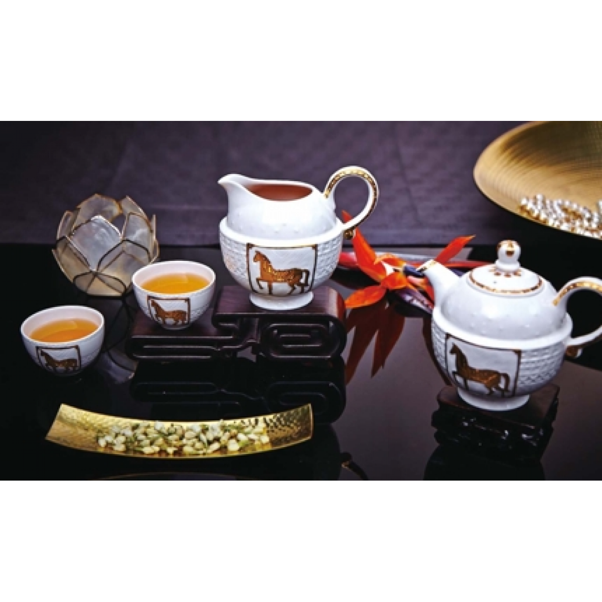 乾唐轩 皇家骏马茶具 鎏金 壶480ml / 茶海480ml / 杯95ml (1壶6杯)
