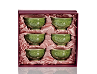 乾唐轩 奇花异瓷饭碗 6入 耀州绿+手工彩釉 300ml