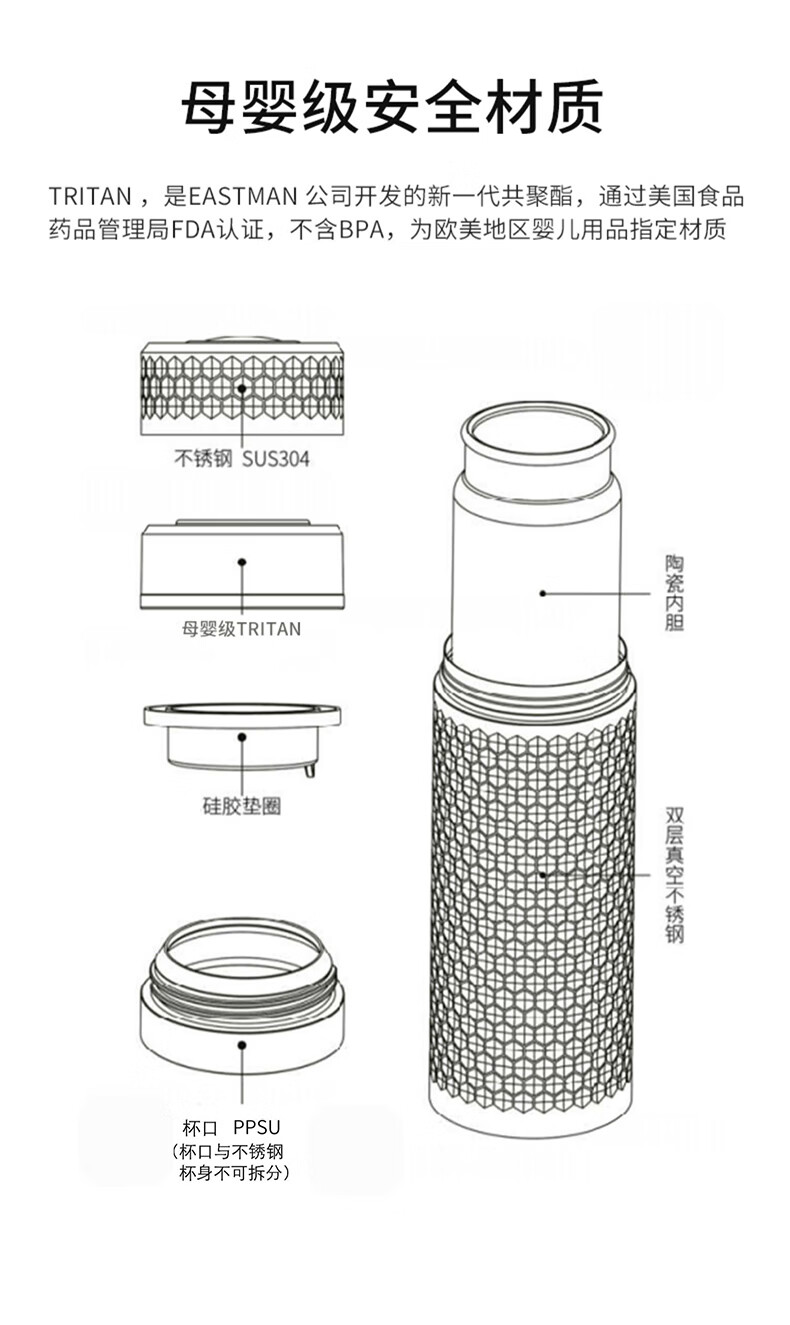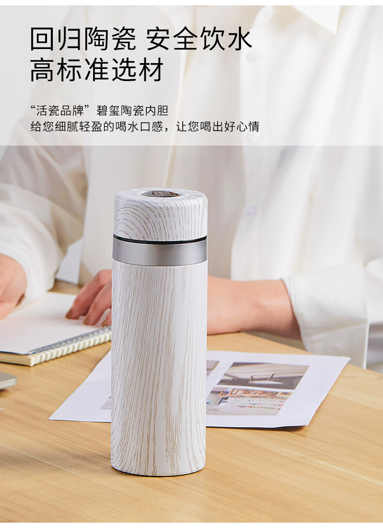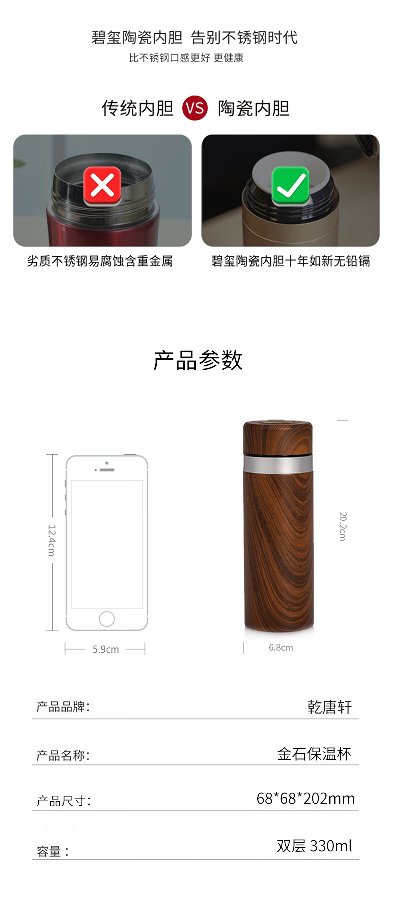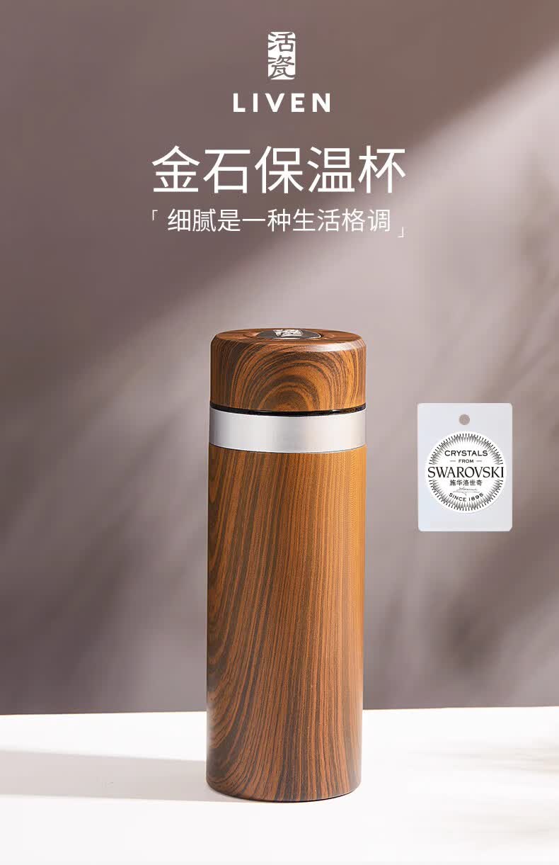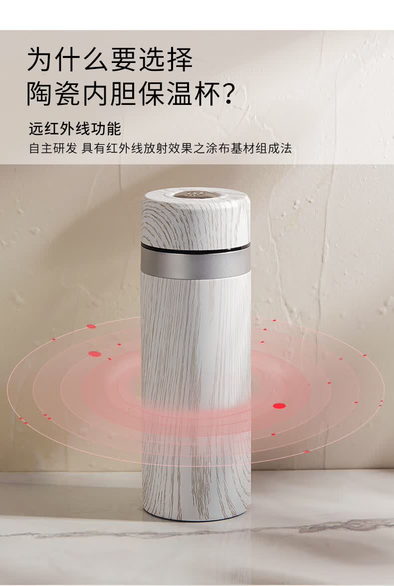 商品名称:乾唐轩 金石保温杯 (大) 330ml 白金色字片