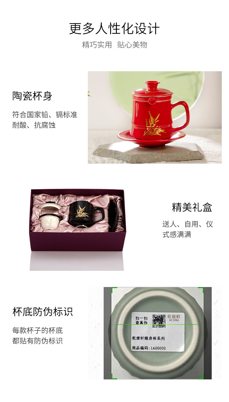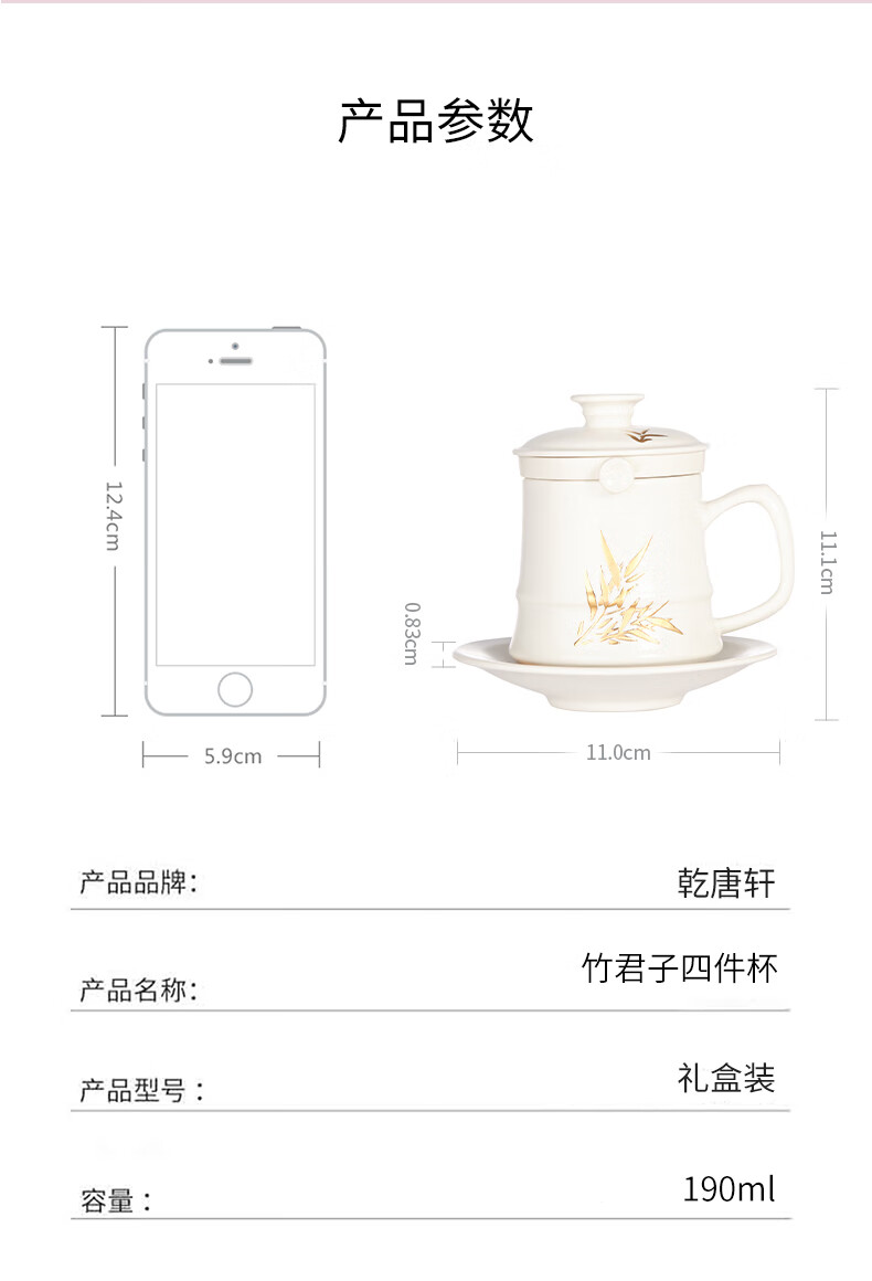 商品名称:乾唐轩 竹君子四件杯(附随行包)鎏金 190ml
