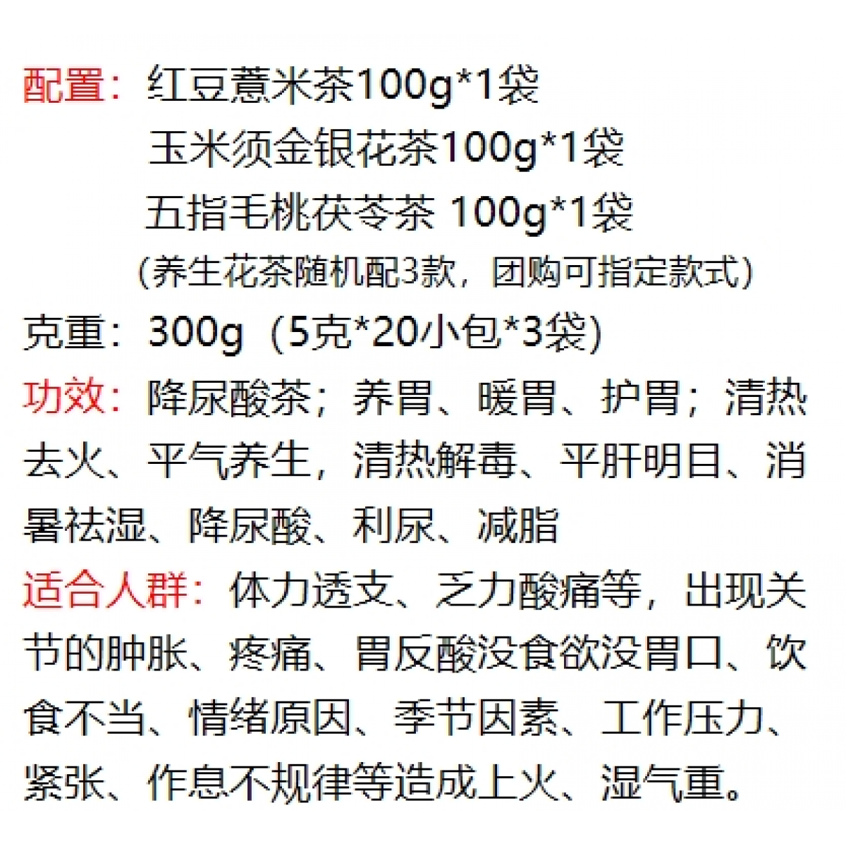 净含量 :300g(5克*20小包*3袋)