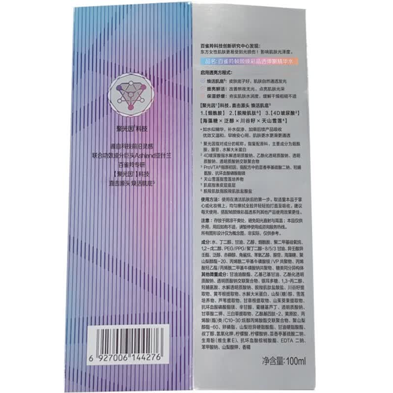 商品名称:百雀羚(PECHOIN)帧颜焕彩晶透弹嫩精华水