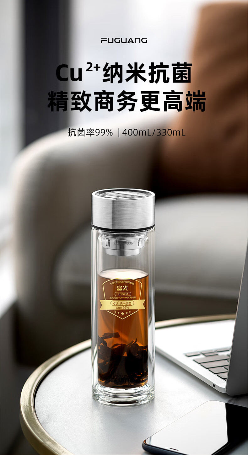 商品名称:富光 铭宜抗菌双层玻璃杯(流通款)400ml G2217-sh-400