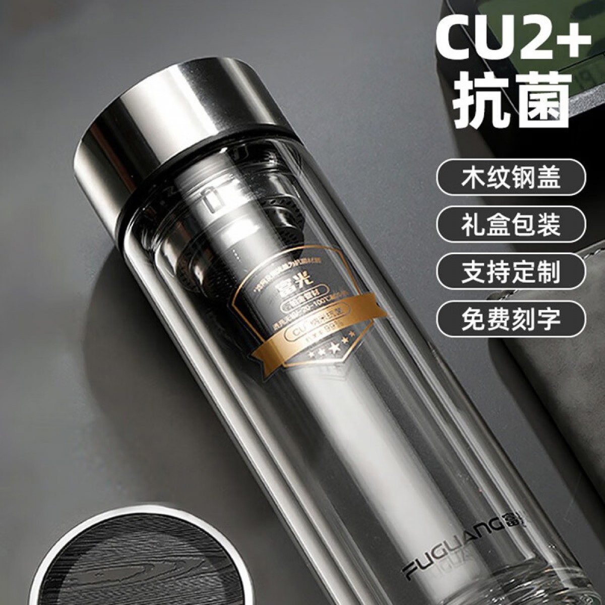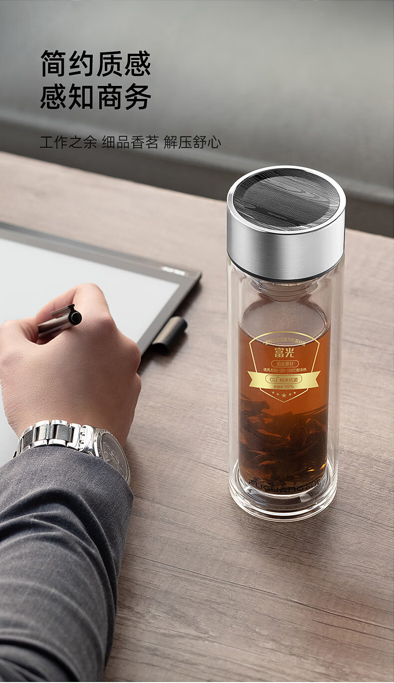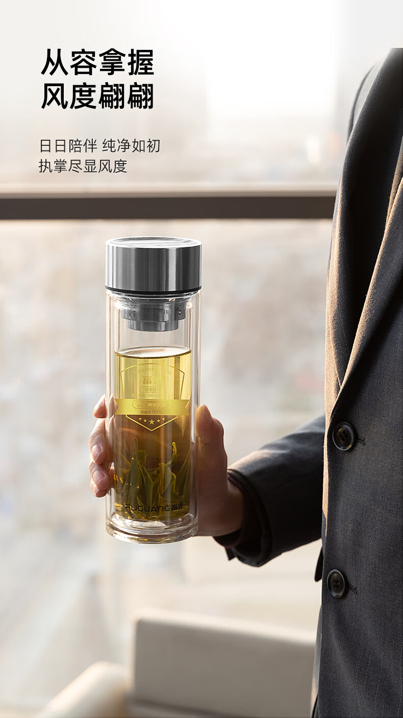 富光 铭宜抗菌双层玻璃杯(流通款)400ml G2217-sh-400