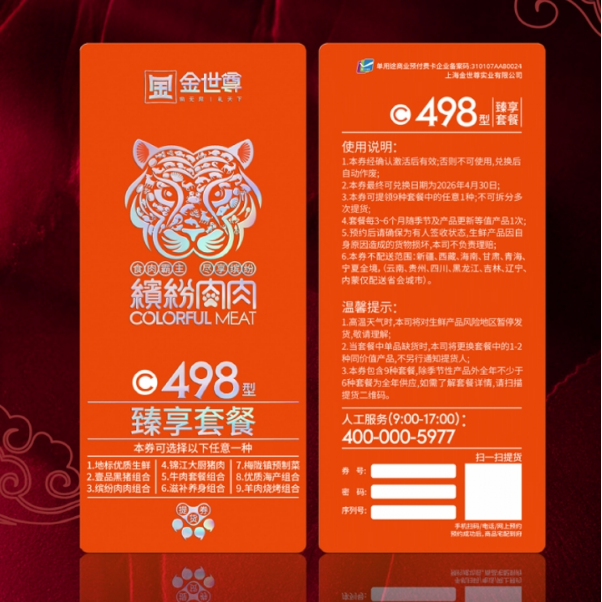 商品名称:金世尊 臻享套餐 498型 缤纷肉肉组合