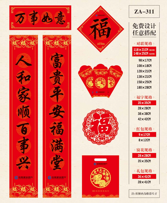 商品名称:开门红植绒烫金春联对联套装礼包 定制311
