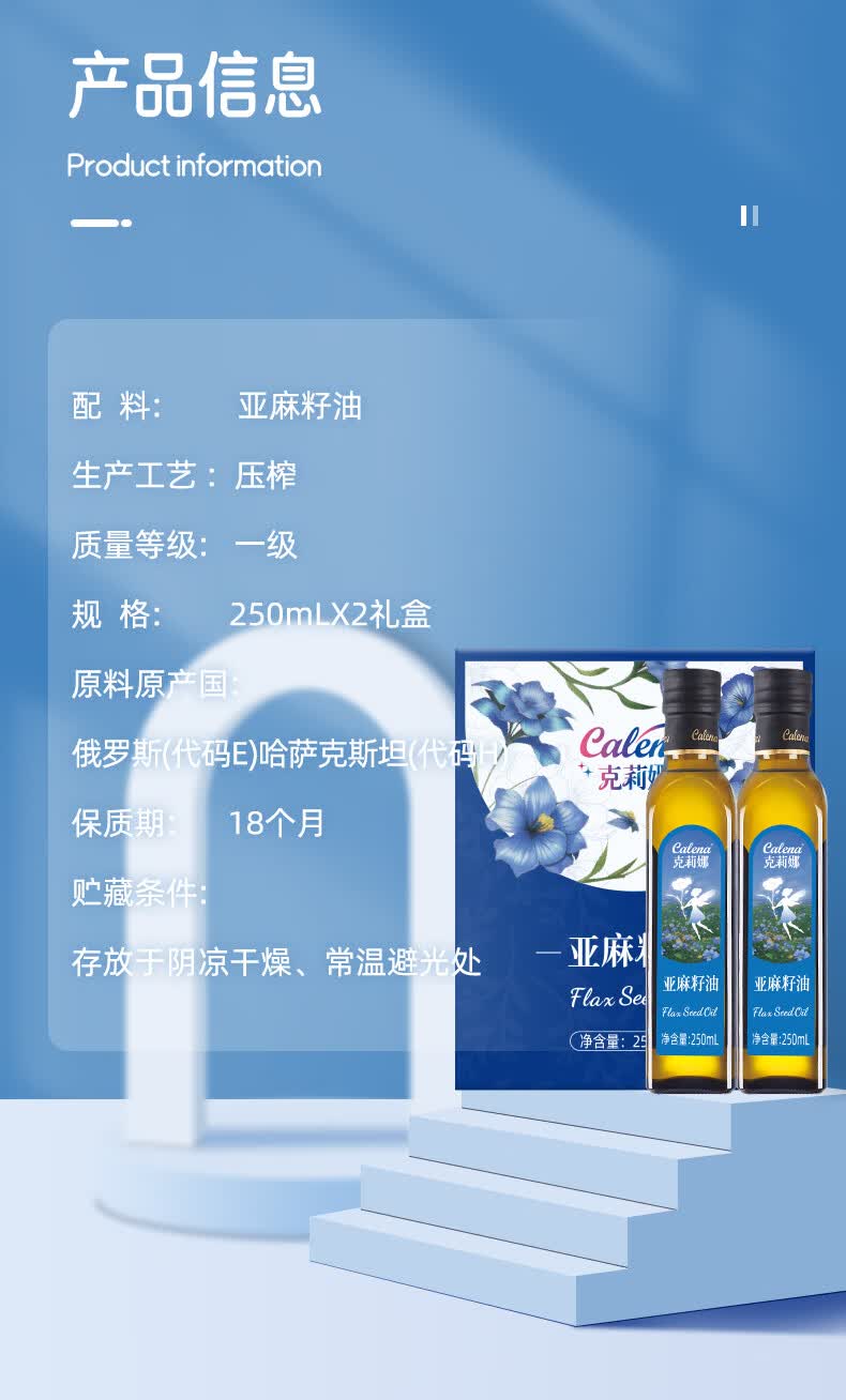 商品名称:克莉娜 亚麻籽油 500ML*2礼盒