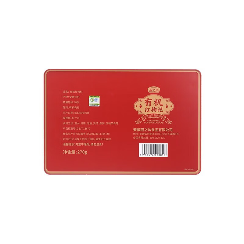 商品名称:燕之坊 有机红枸杞礼盒 270g