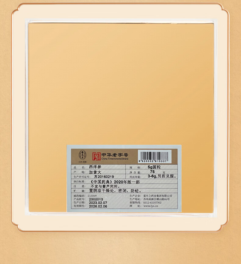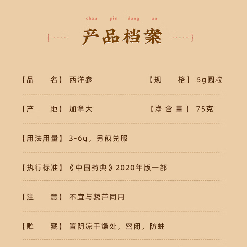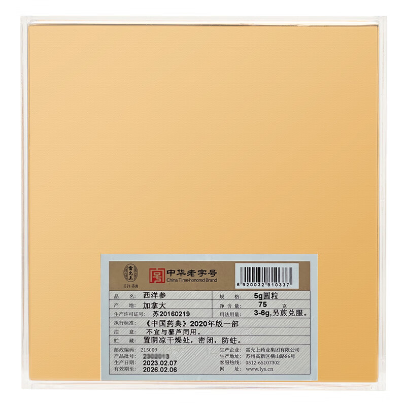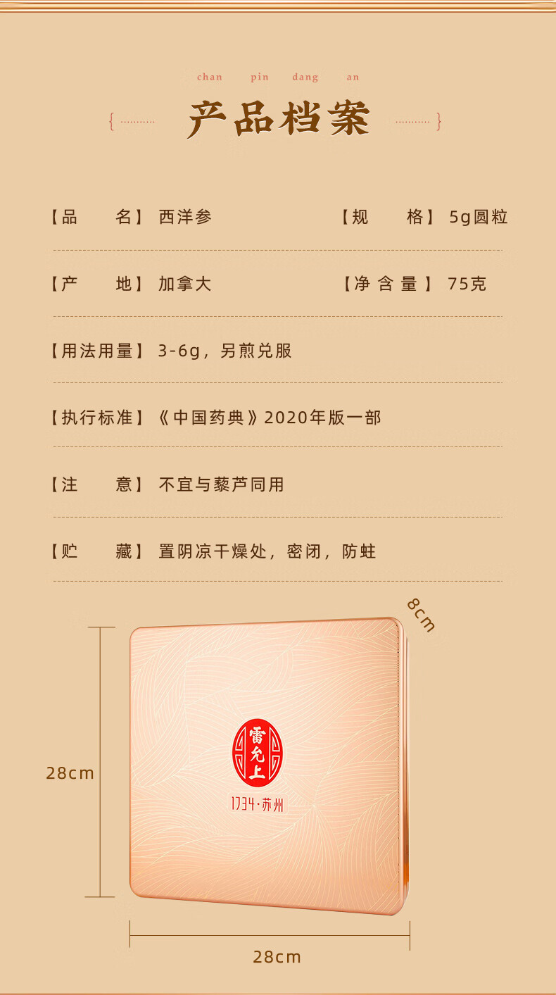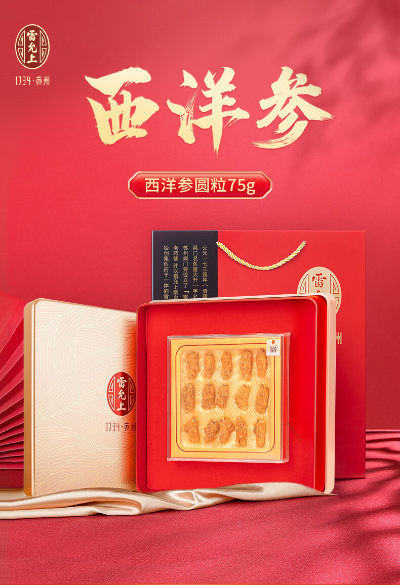 商品名称:雷允上 西洋参5g圆粒礼盒 75g/盒