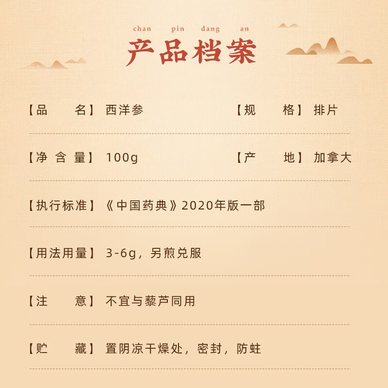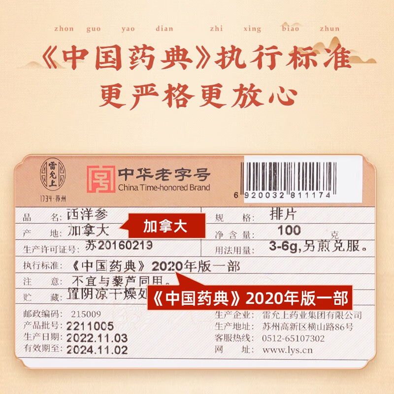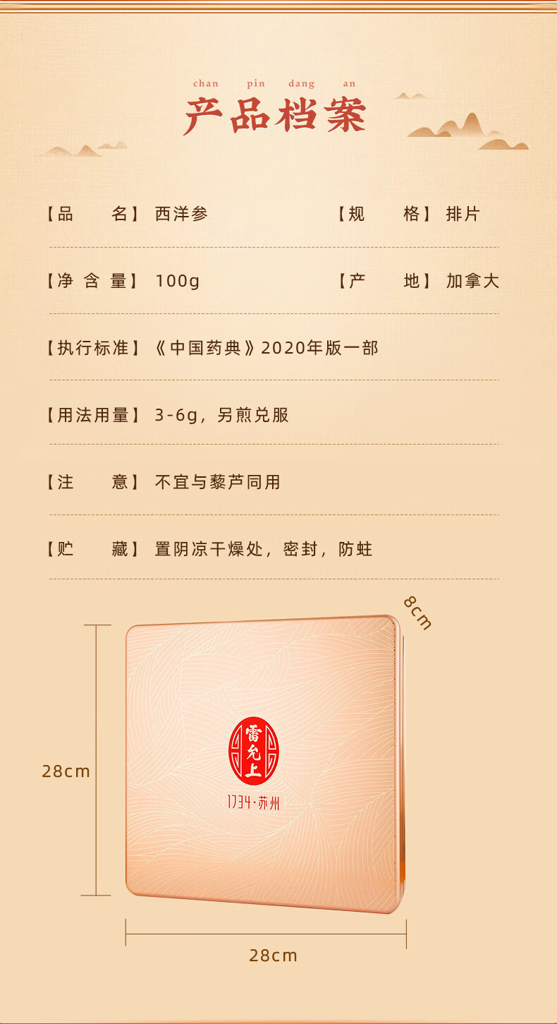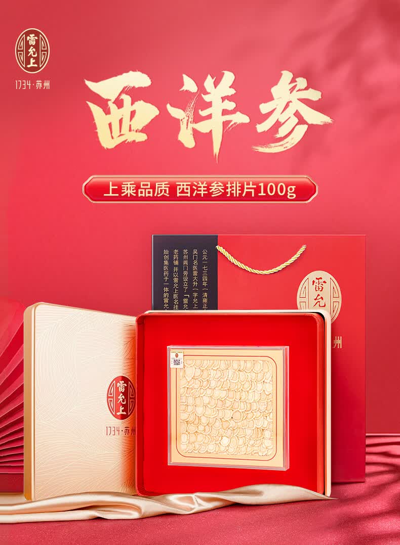 商品名称:雷允上 西洋参排片礼盒 100g/盒