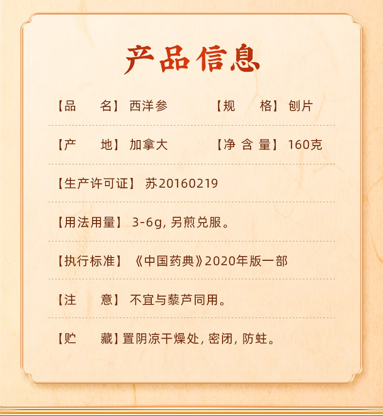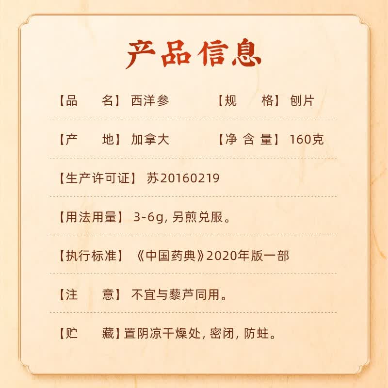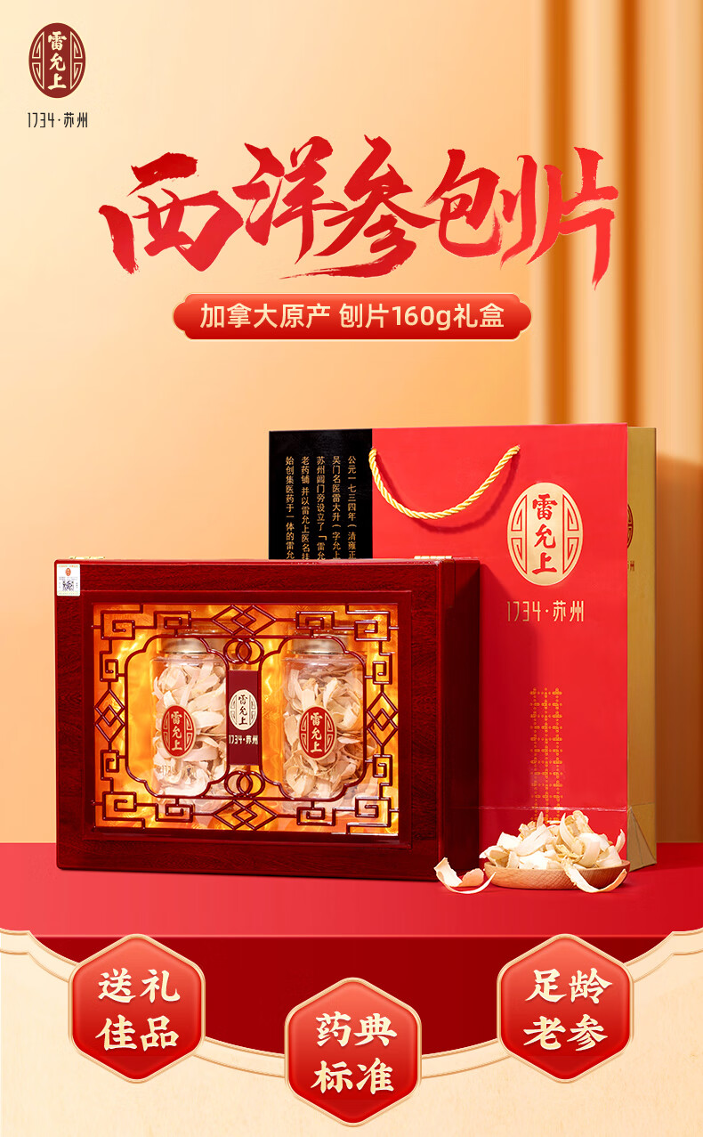 商品名称:雷允上 西洋参刨片礼盒 160g(80g*2)