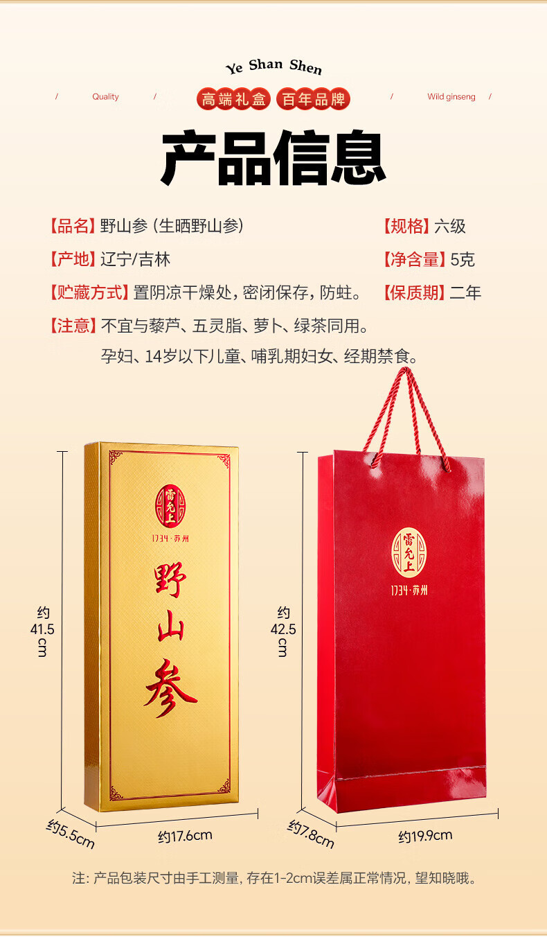 商品名称:雷允上 野山参6级礼盒 2.5g*2/盒