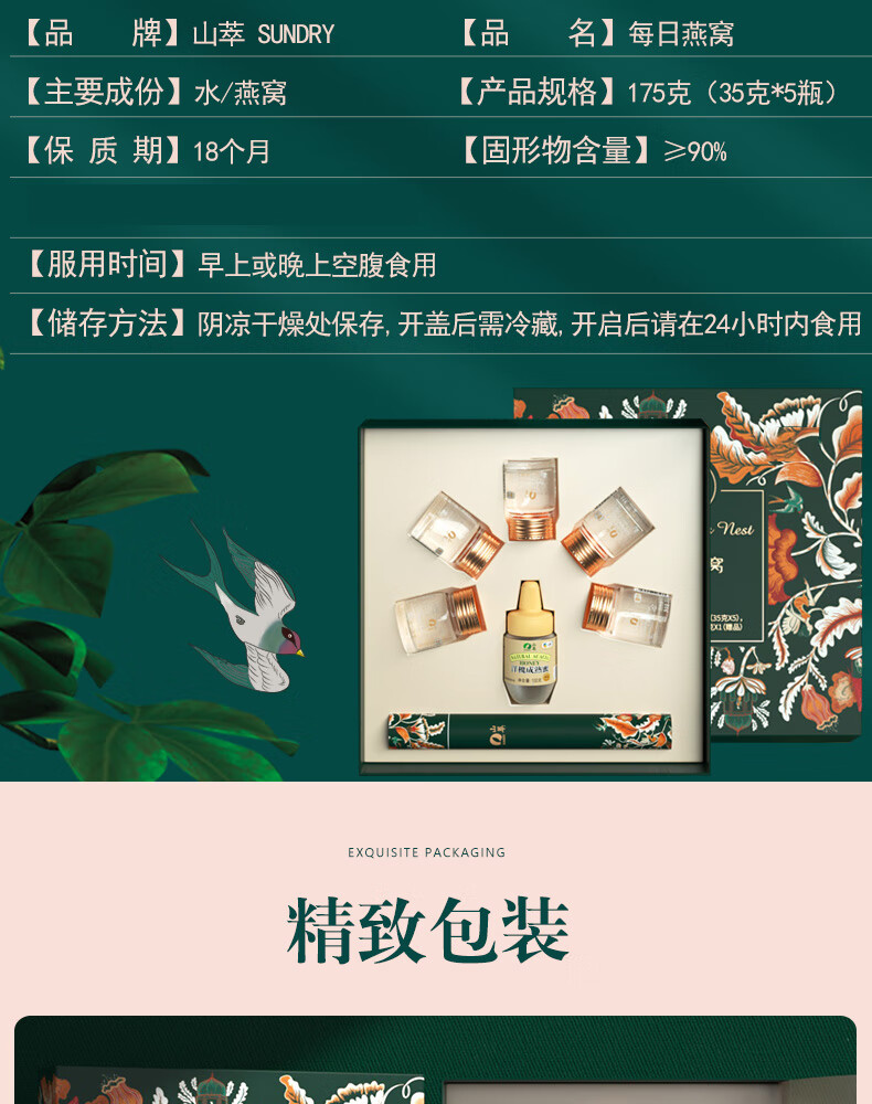 商品名称:中粮 山萃每日燕窝175克礼盒