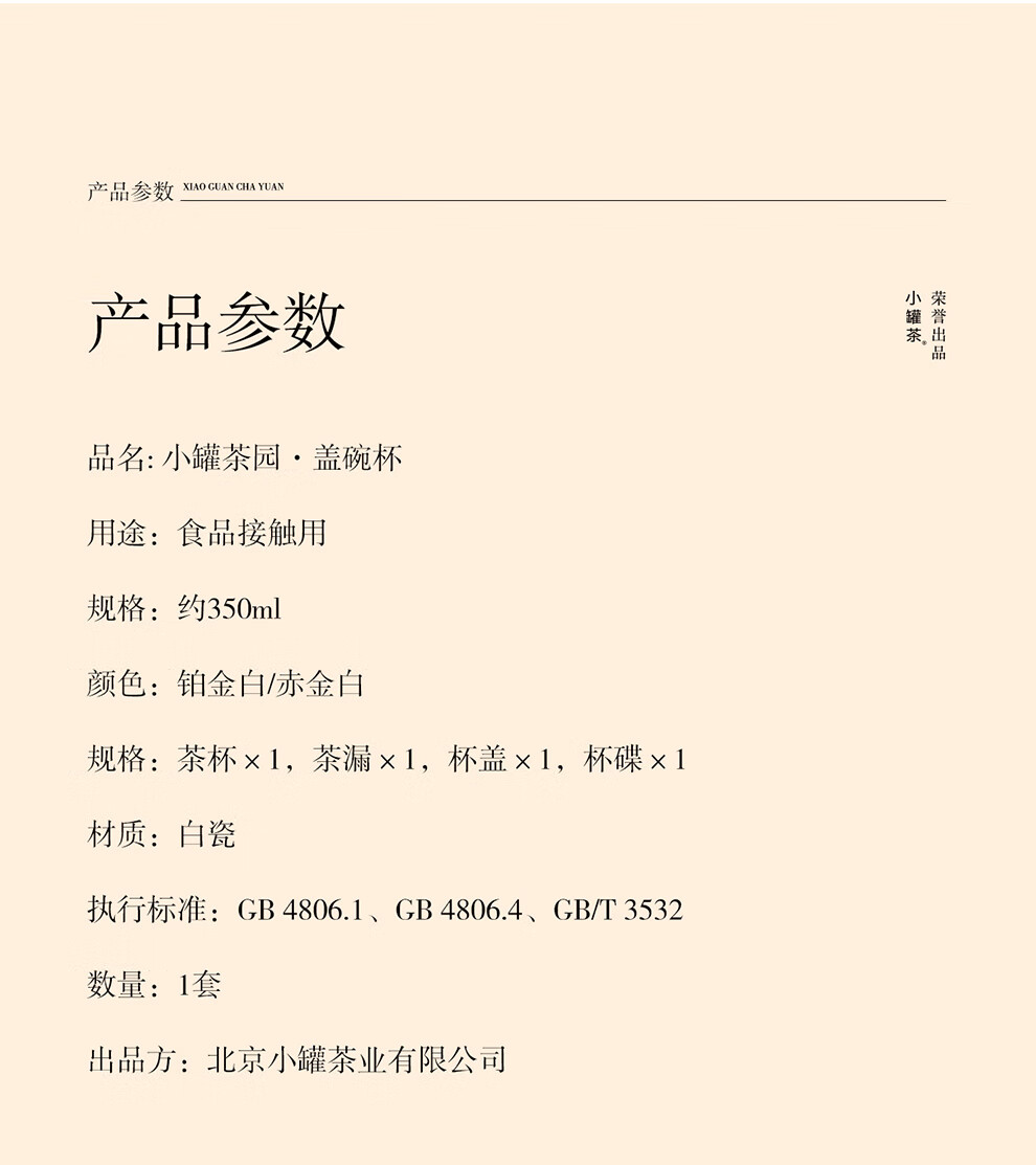 商品名称:小罐茶 小罐茶园·盖碗杯 350ml