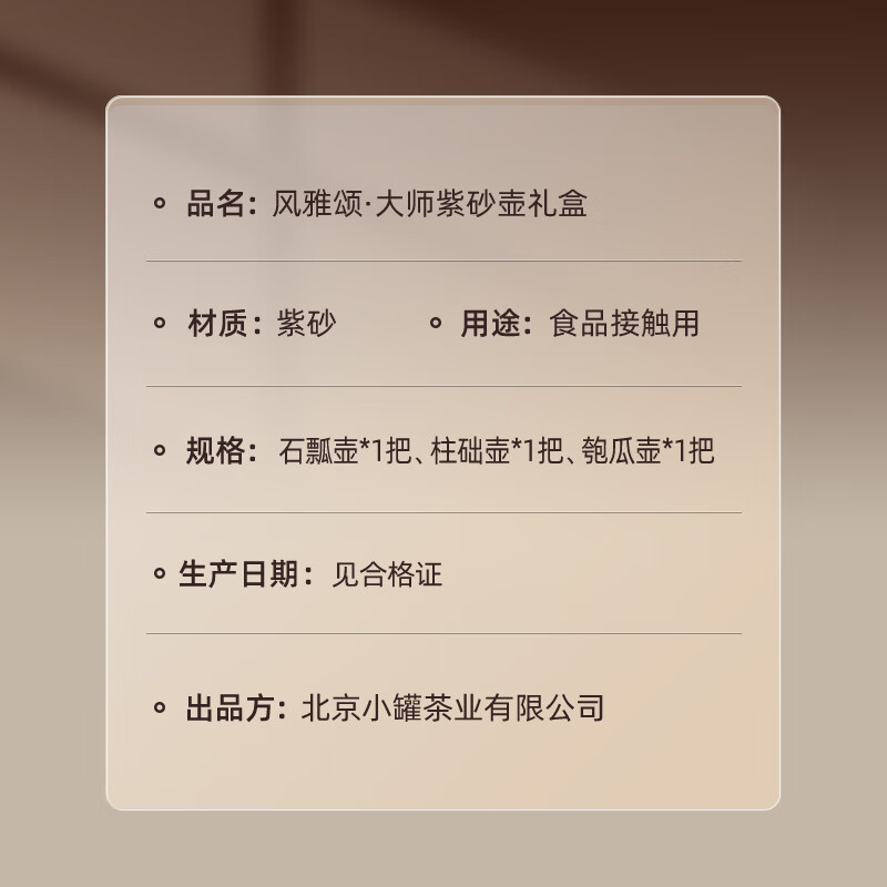 商品名称:小罐茶 风雅颂·大师紫砂壶礼盒 三件装