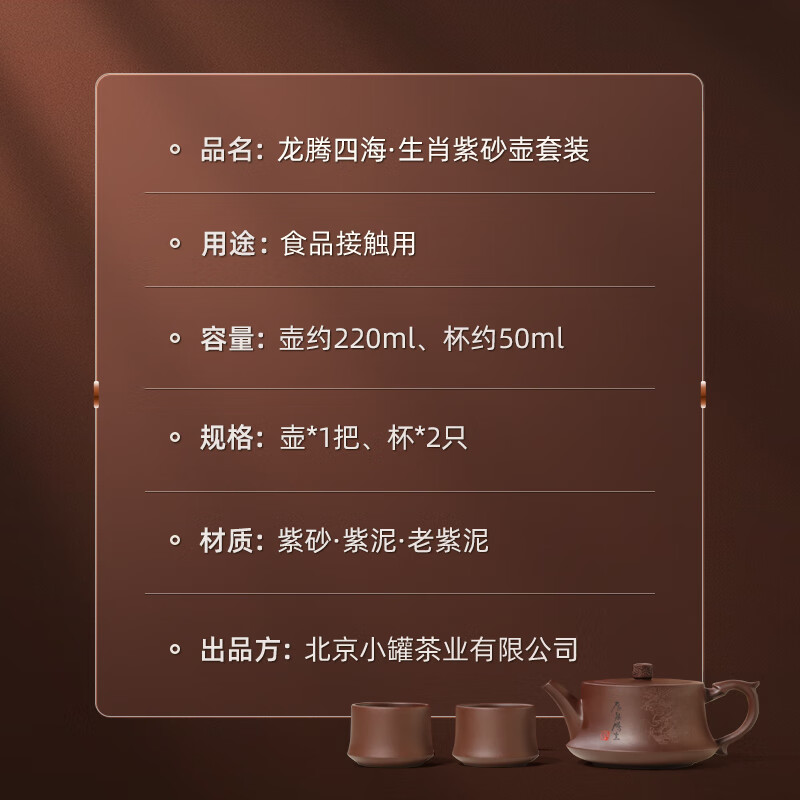 商品名称:小罐茶 龙腾四海·生肖紫砂壶套装
