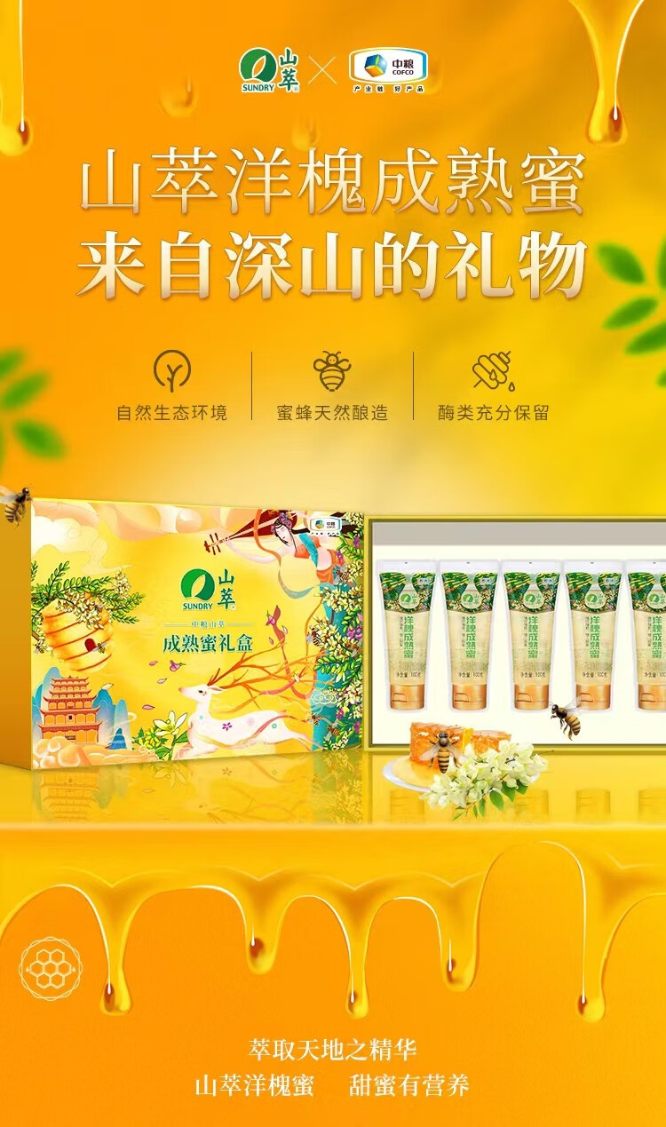 商品名称:中粮 山萃洋槐成熟蜜礼盒500g