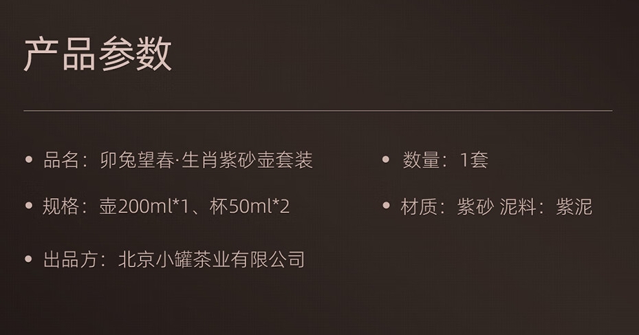 商品名称:小罐茶 卯兔望春·生肖紫砂壶套装
