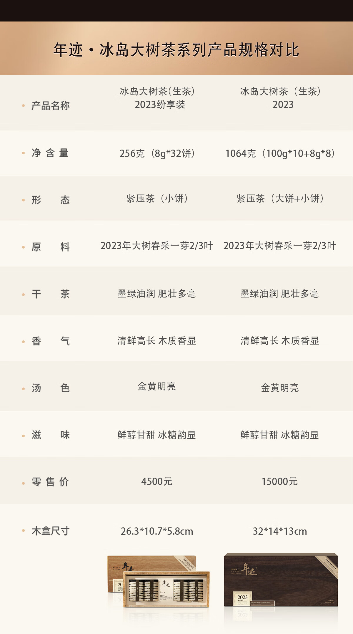 商品名称:年迹 冰岛大树茶(2023) 1.064千克(100克x10,8克x8)