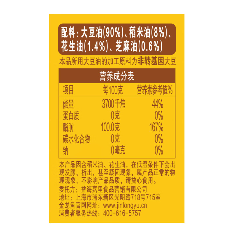 商品名称:金龙鱼 黄金比例稻谷调和油1.8L(非转基因)