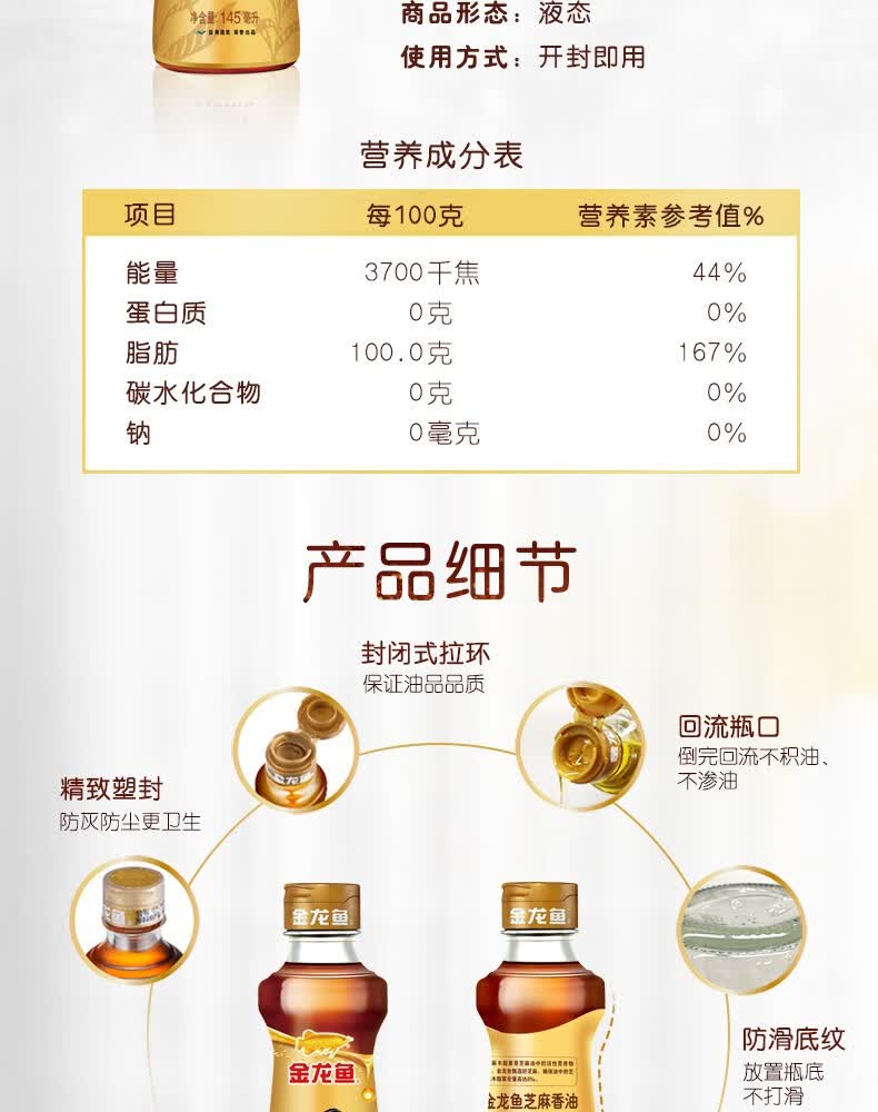 商品名称:金龙鱼 芝麻油145ml*4礼盒装