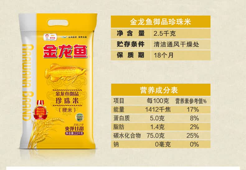 商品名称:金龙鱼 御品珍珠米2.5kg
