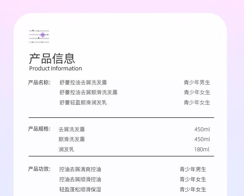 商品名称:舒蕾 控油去屑顺滑洗发露-450ml
