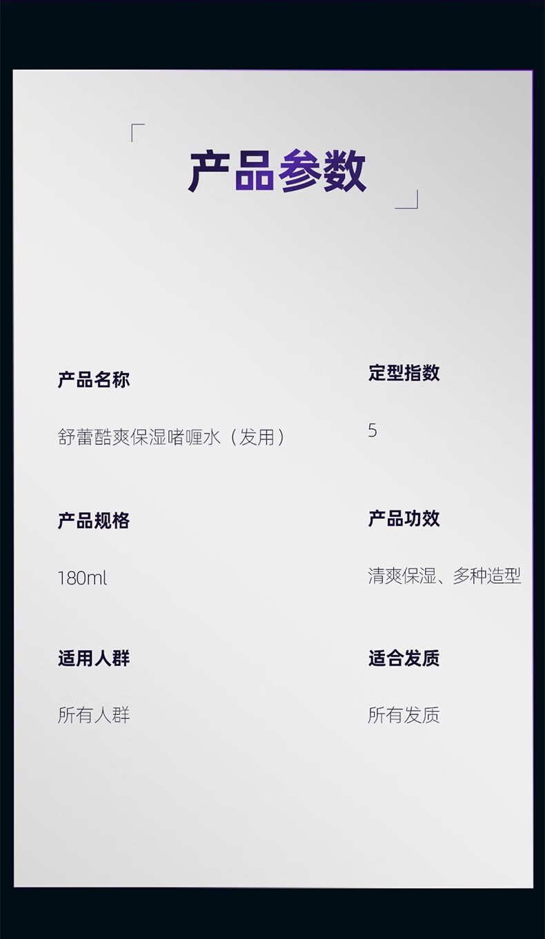商品名称:舒蕾 酷爽保湿啫喱水(发用)-180ml