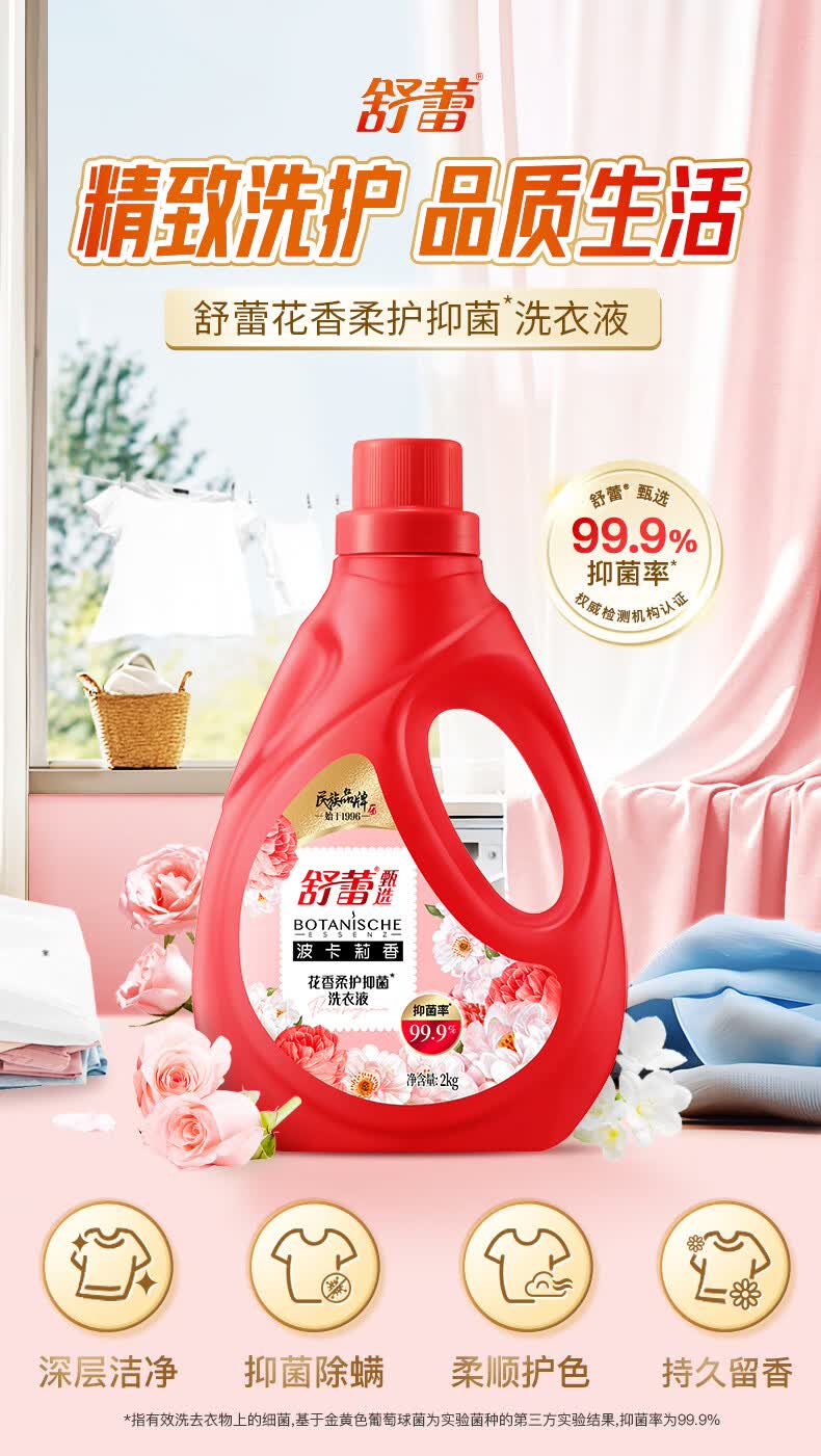 舒蕾 波卡莉香花香柔护抑菌洗衣液2KG