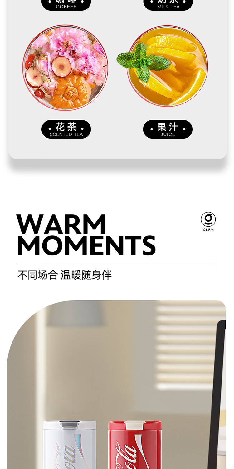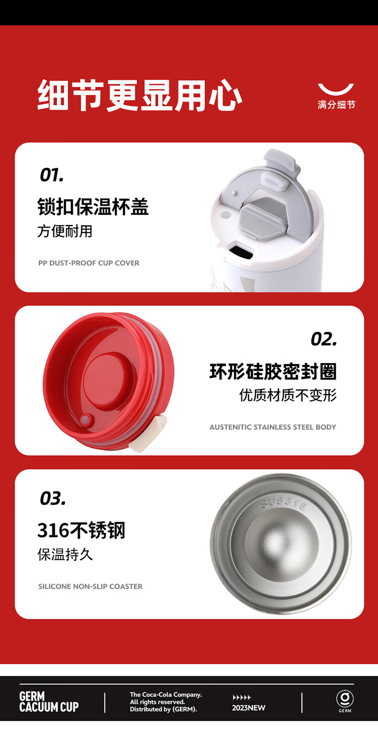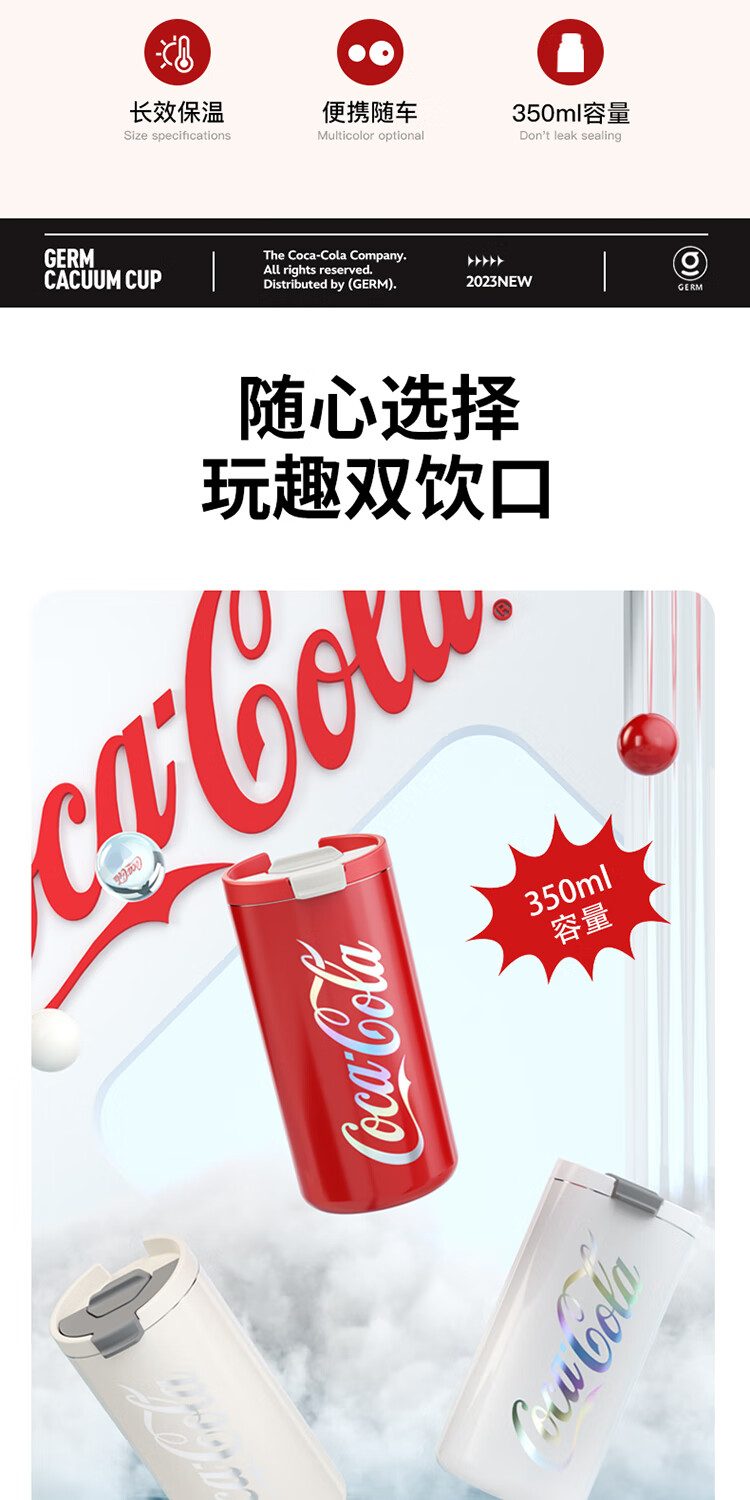 商品名称:格沵(germ)可口可乐联名系列 炫彩锁扣保温杯 GE-CK23AW-DK43系列 350mL