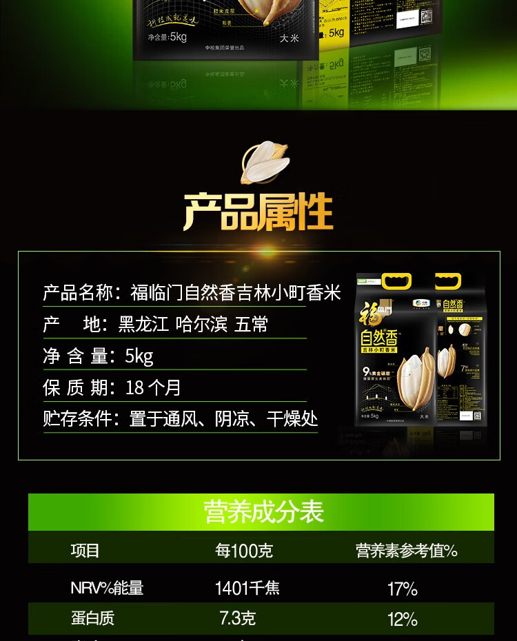 商品名称:中粮 福临门自然香吉林小町香米5kg