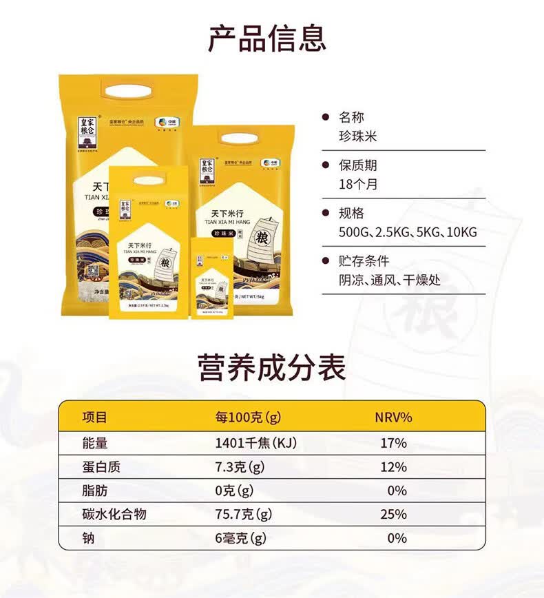商品名称:中粮 皇家粮仓天下米行珍珠米2.5kg