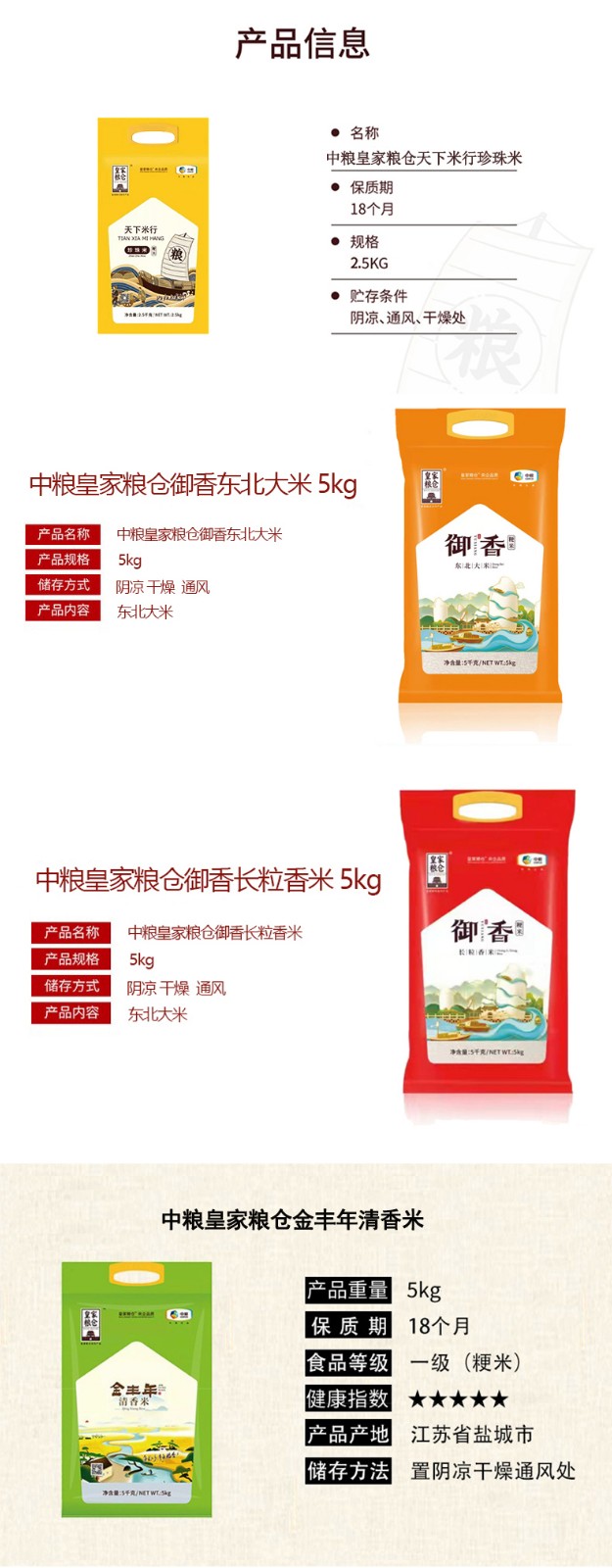 商品名称:中粮皇家粮仓金丰年清香米PE 5kg