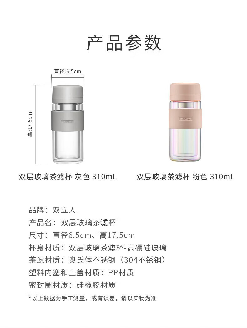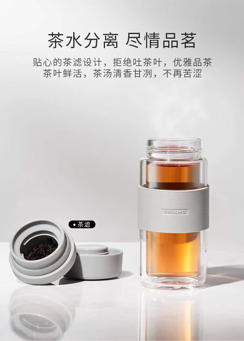 商品名称:双立人(ZWILLING)双层玻璃茶滤杯灰色 1026353 310mL