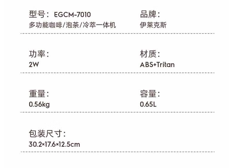 商品名称:伊莱克斯 多功能咖啡/泡茶/冷萃一体机 EGCM7010