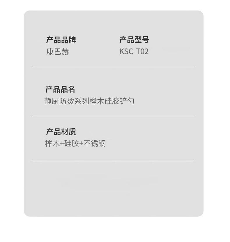 商品名称:康巴赫-静厨防烫系列榉木硅胶铲勺 KSC-T02