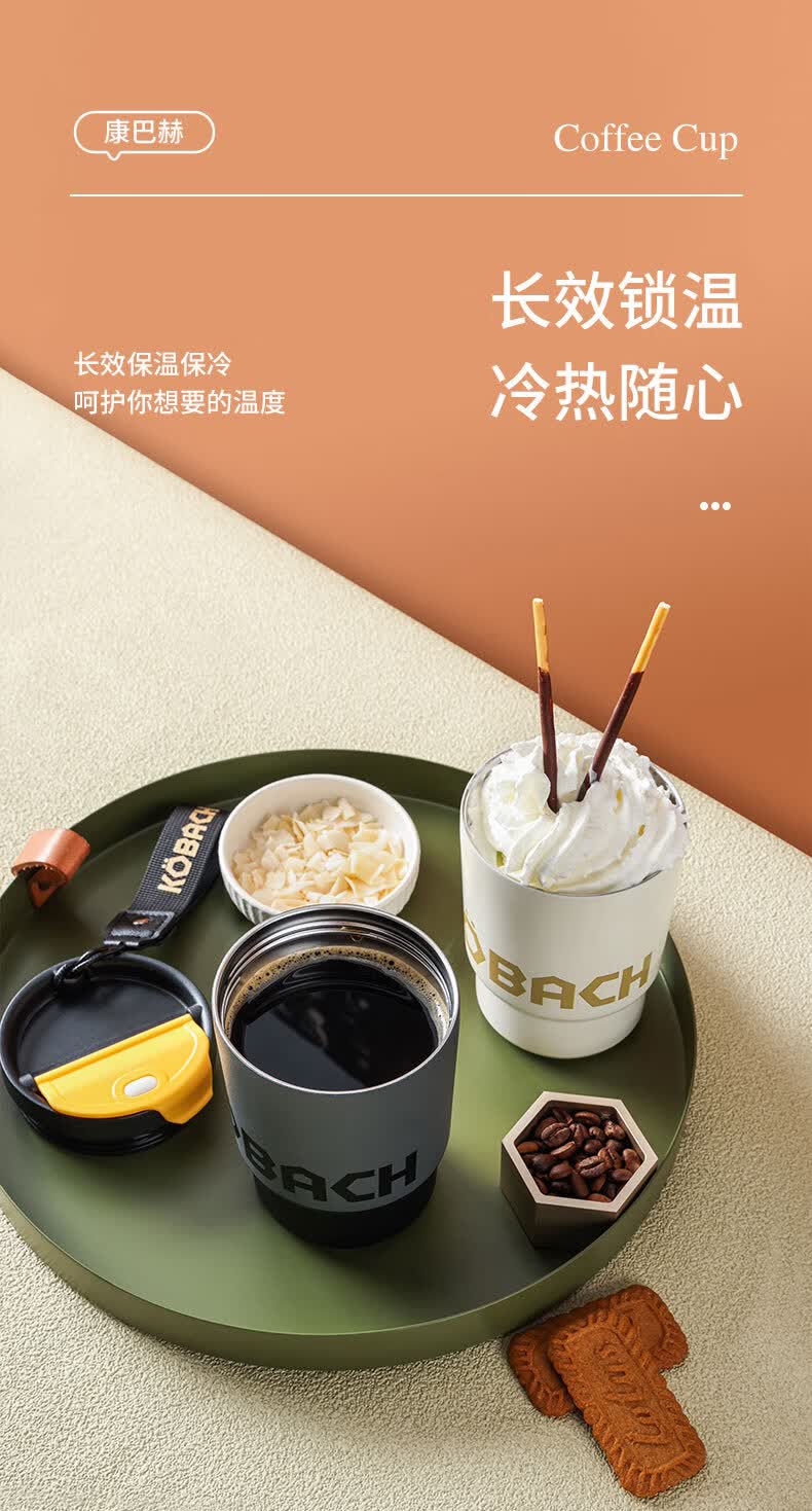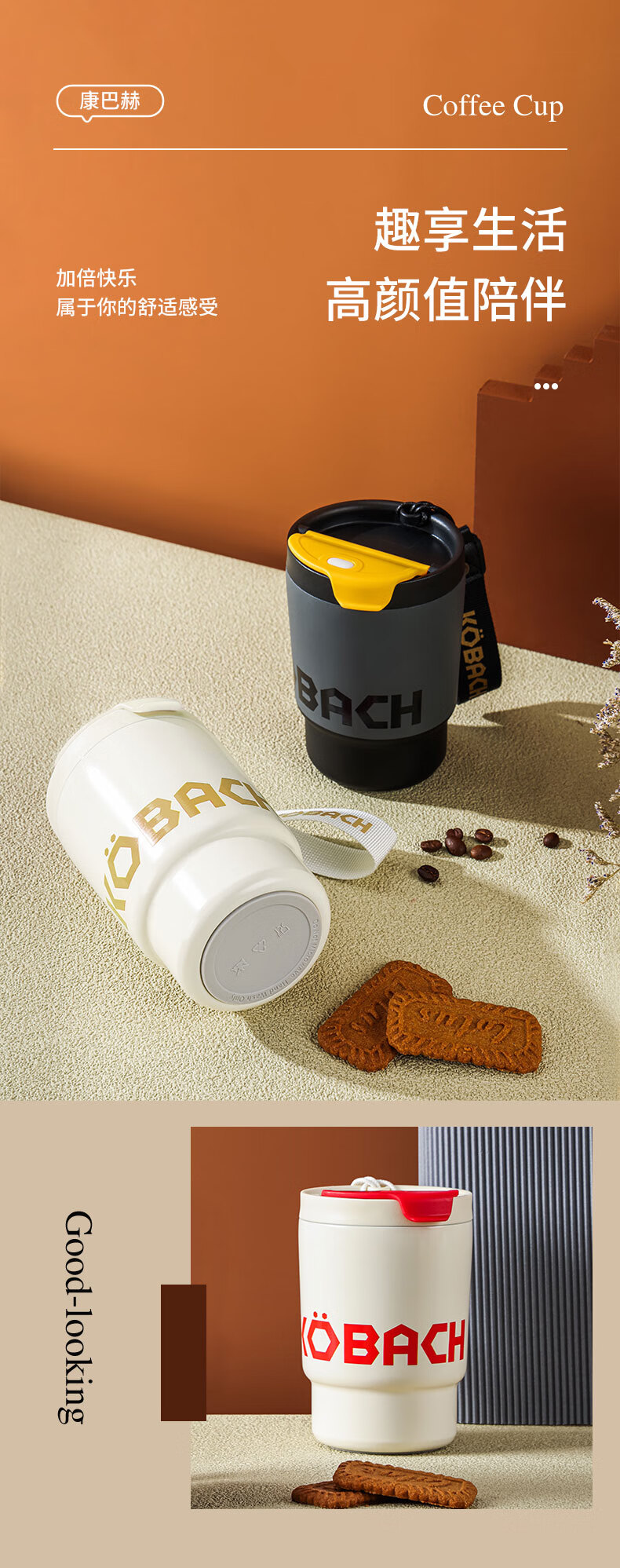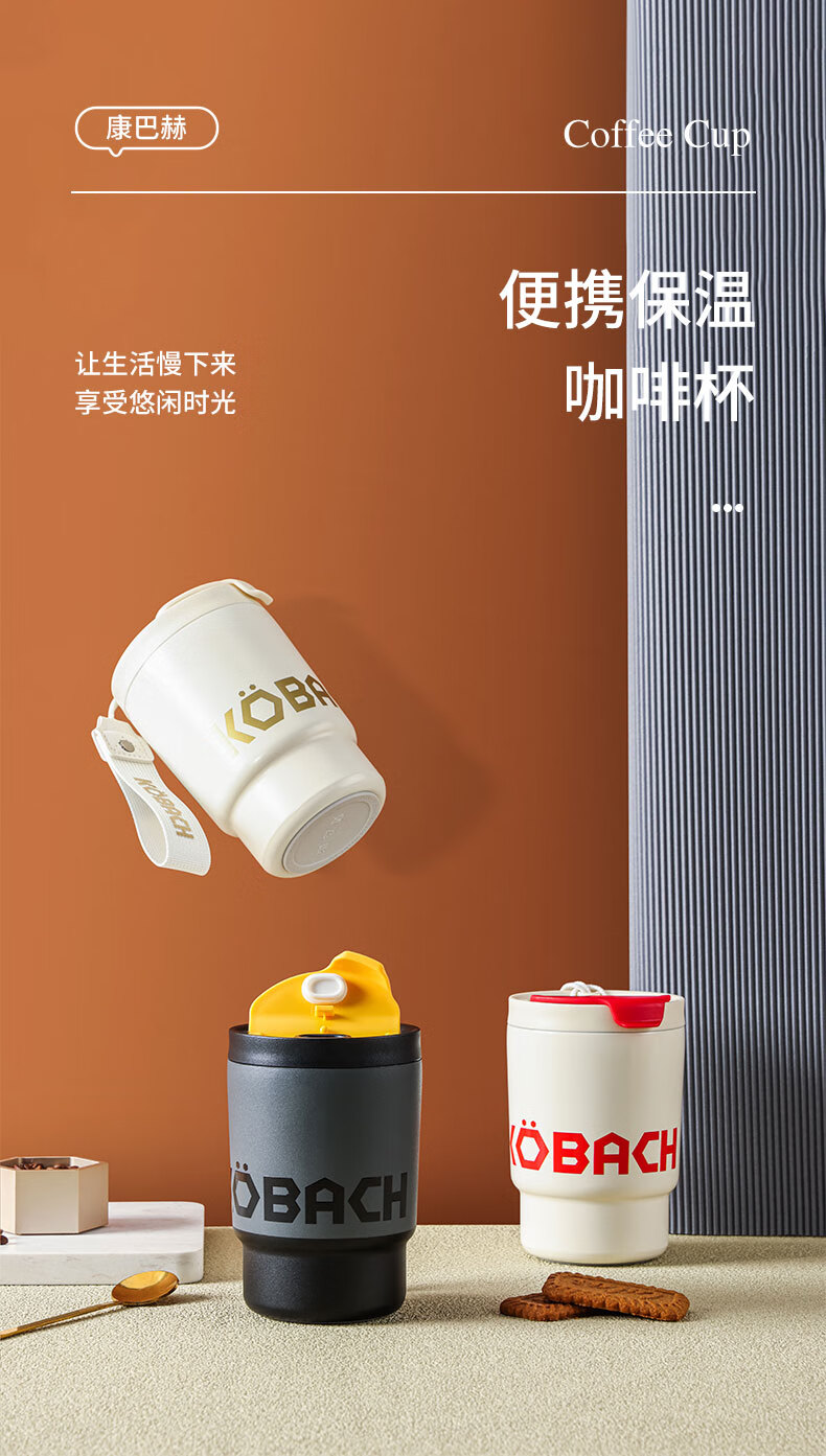 康巴赫 便携保温咖啡杯 LPB38B01 白红色 380ml