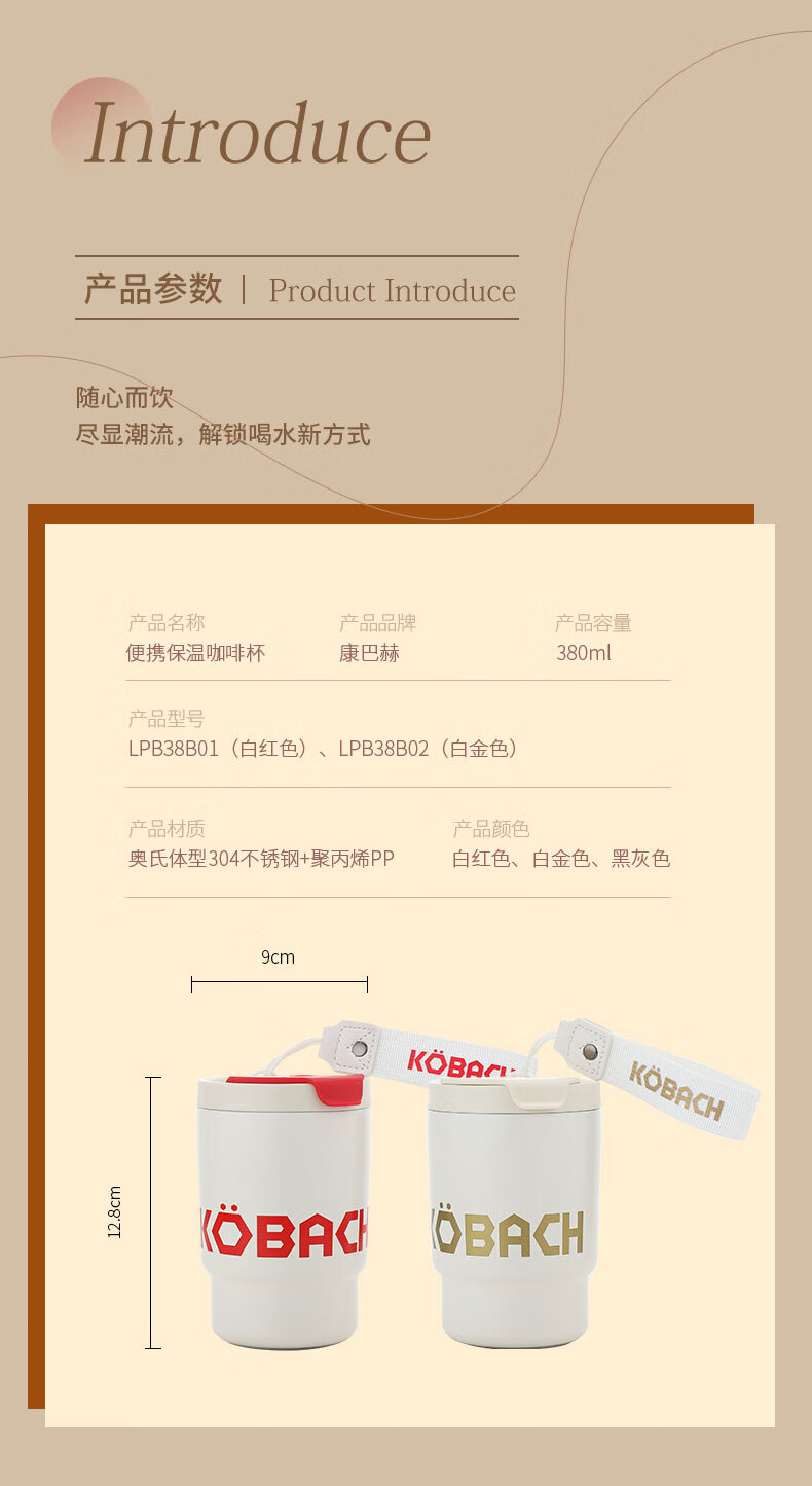 商品名称:康巴赫 便携保温咖啡杯 LPB38B01 白红色 380ml