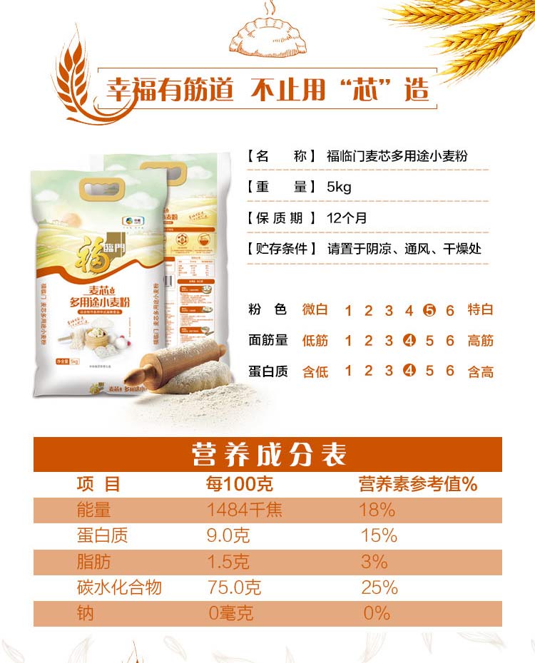 商品名称:中粮 福临门麦芯多用途小麦粉5kg