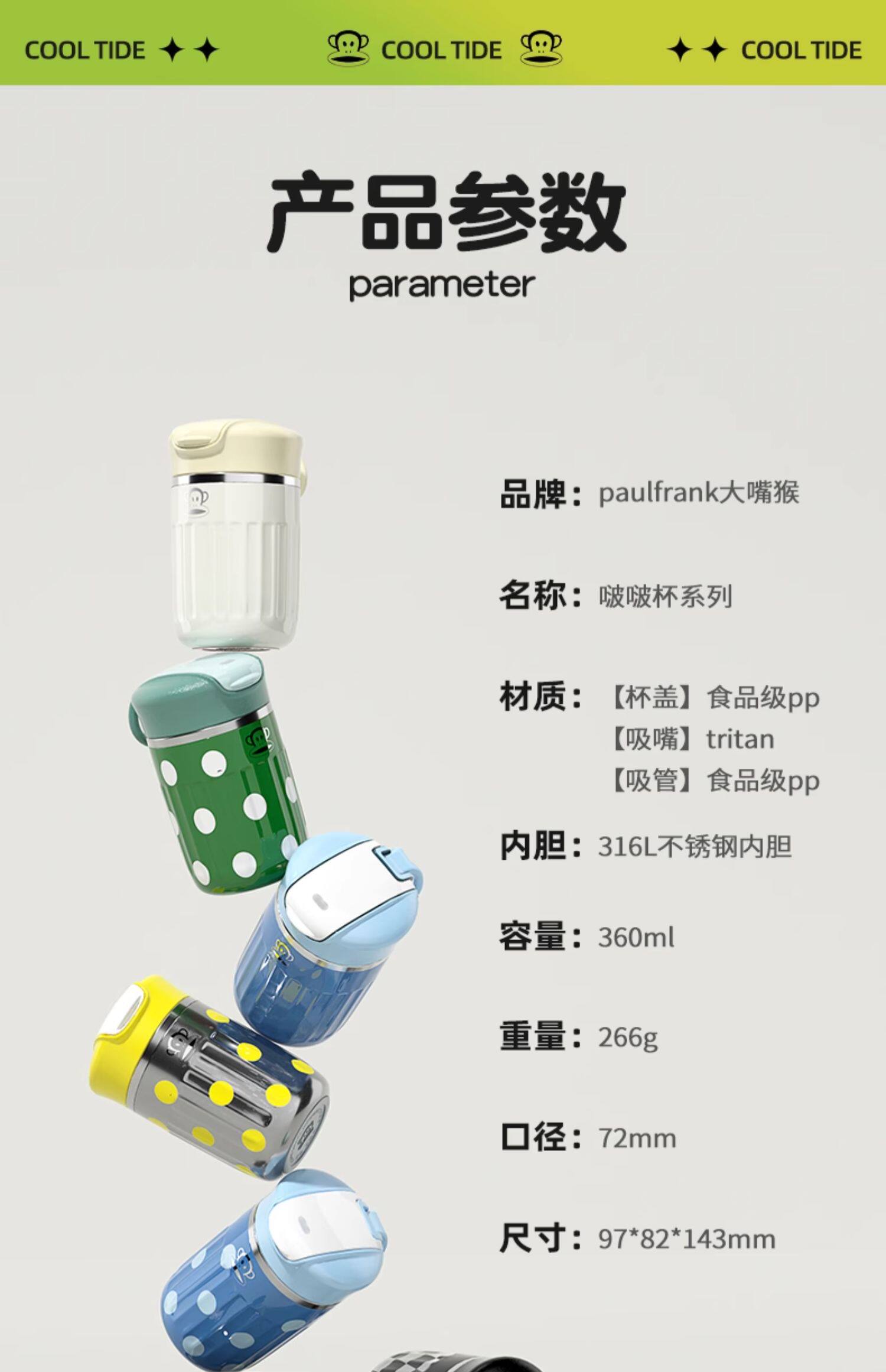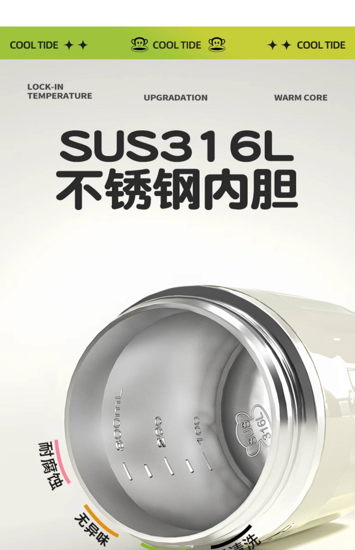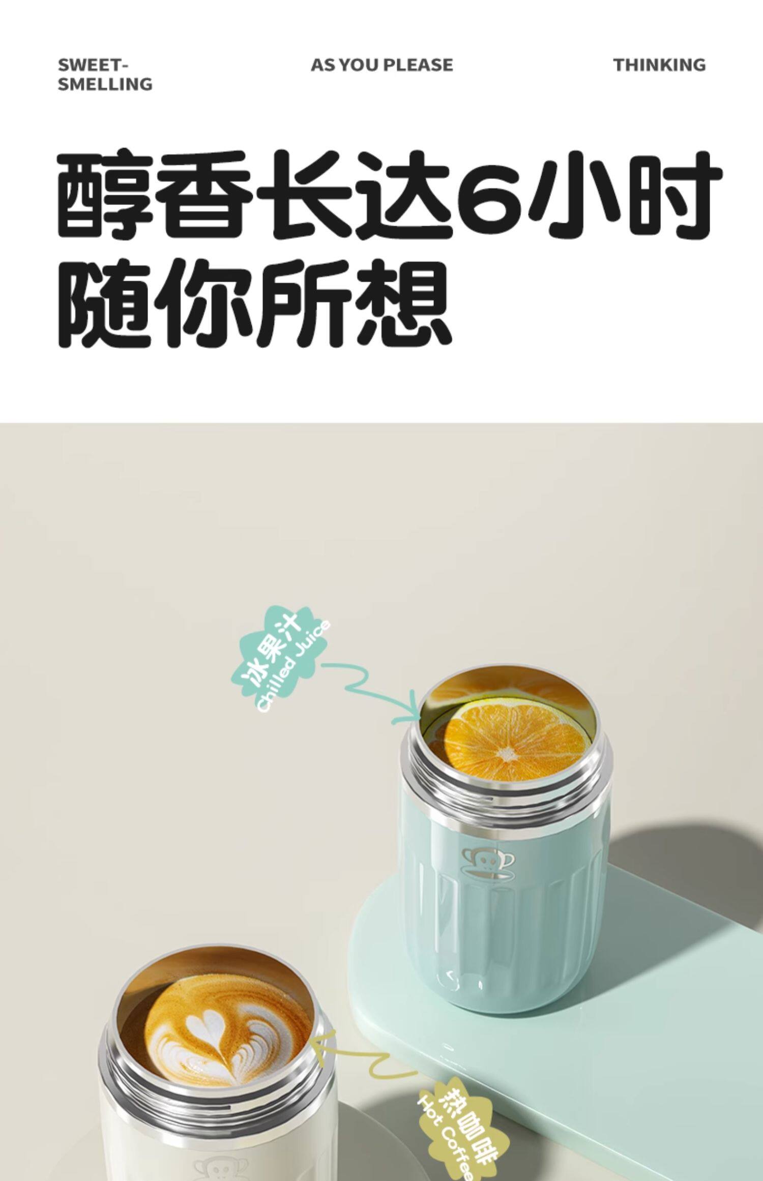 商品名称:大嘴猴 真空保温杯(双饮咖啡杯)PF116 360ml